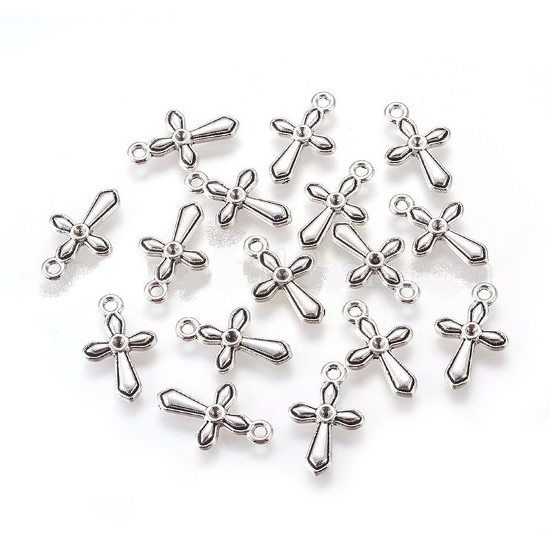 Елегантна метална висулка кръстче с покритие в цвят антично сребро, подходяща за колиета, гривни, чанти и символични бижута. Лека, фина и подходяща за ежедневни аксесоари.
