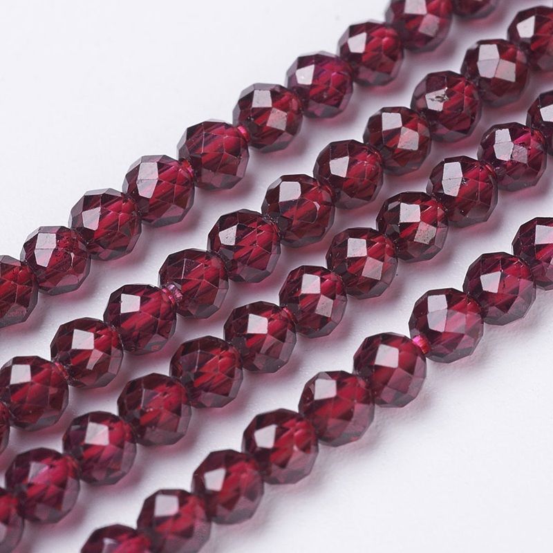 Гранат фасетирани мъниста 3~3,1 мм, Клас А - наниз 39 см
