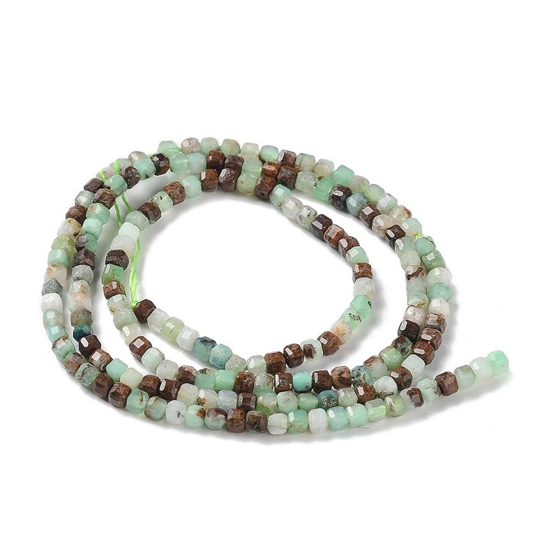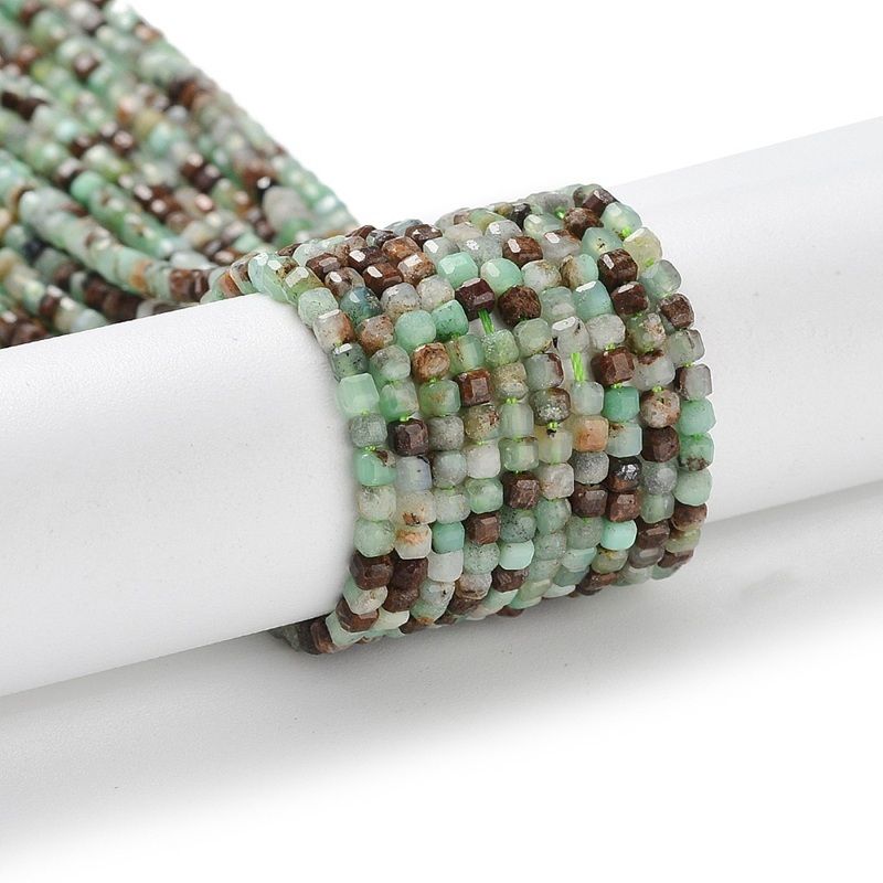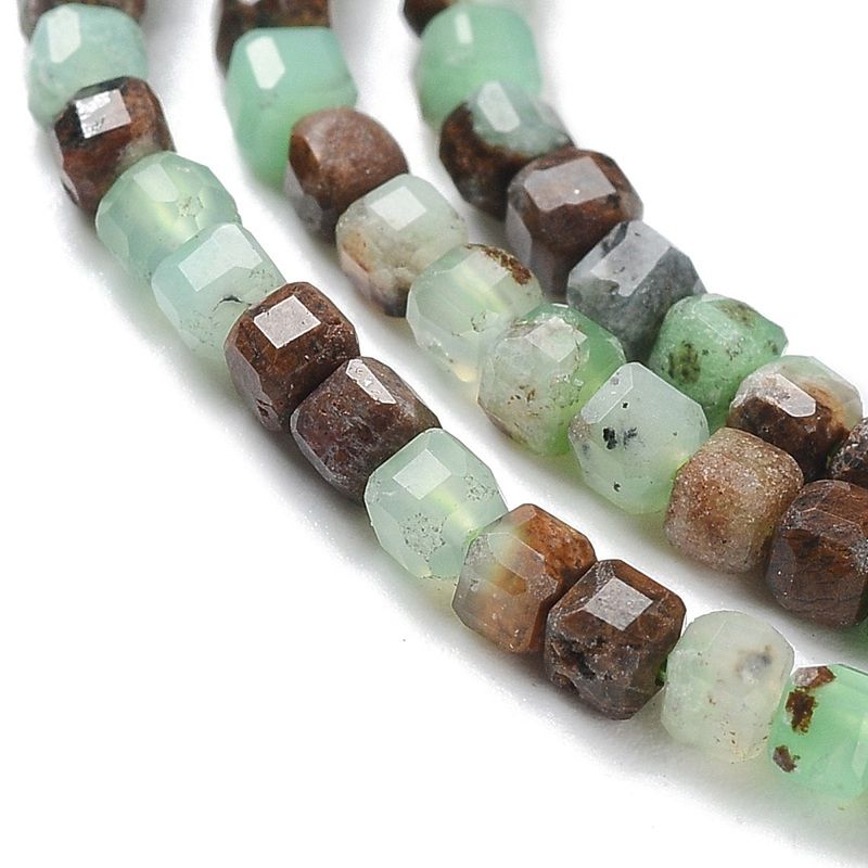 Хризопраз фасетирани мъниста кубче 2.5x2.5x2.5 мм - наниз около 39 см