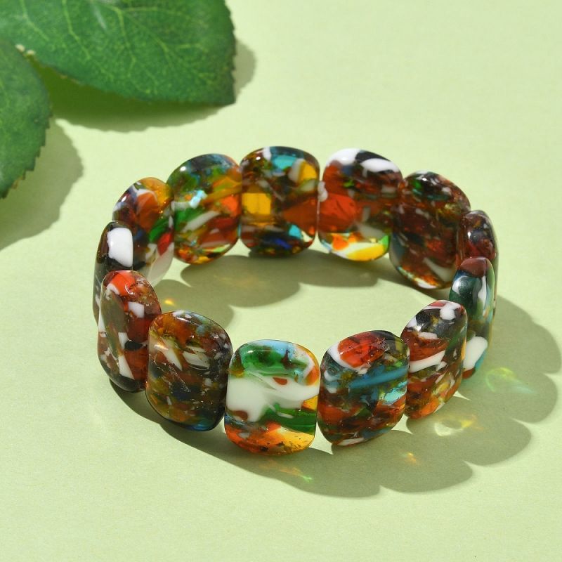 При покупка получавате една разтеглива гривна с мъниста Lampwork в смесени цветове.
