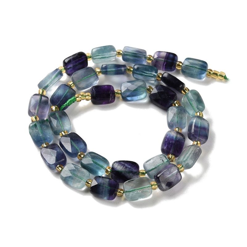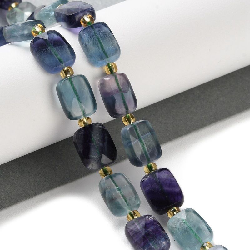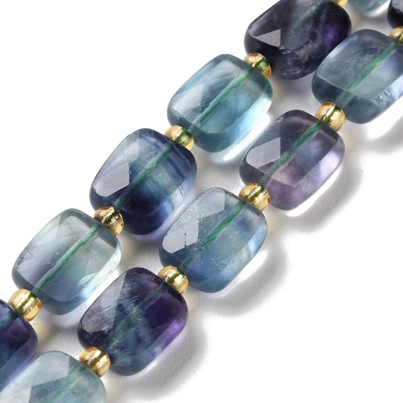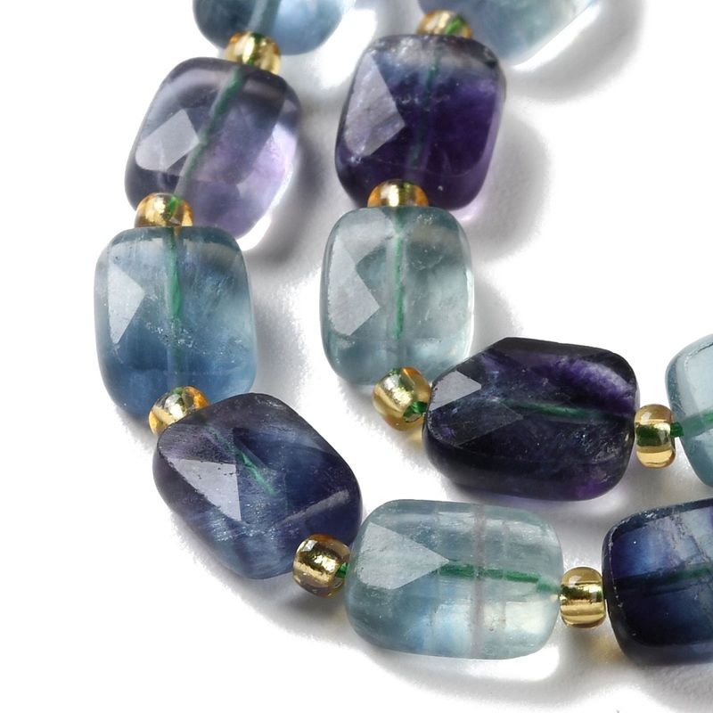 Флуорит естествен правоъгълни, фасетирани мъниста 10x8x4.5мм - около 31 бр, наниз 39 см