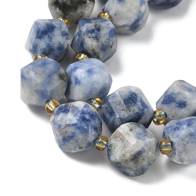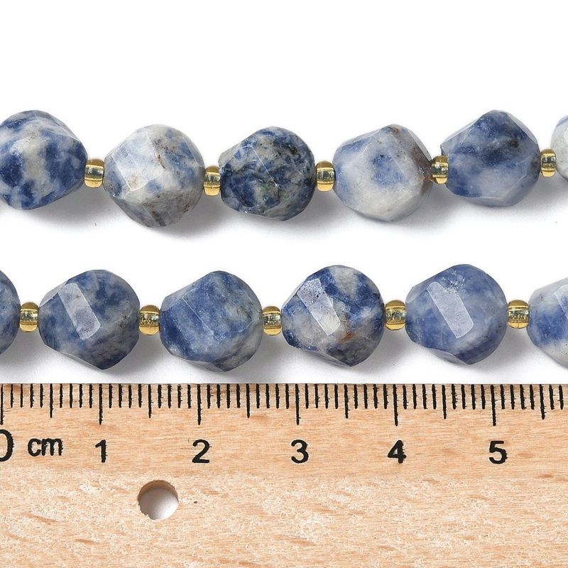 ● Фасетираните мъниста от яспис "Blue Spot" с размер 10x9мм, са подходящи за създаване на уникални бижута. Всеки наниз съдържа около 30-32 броя мъниста, което ви осигурява достатъчно материал за вашите проекти.
