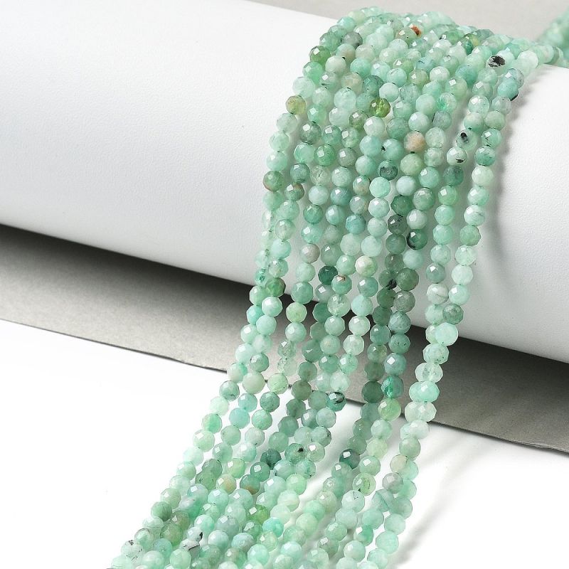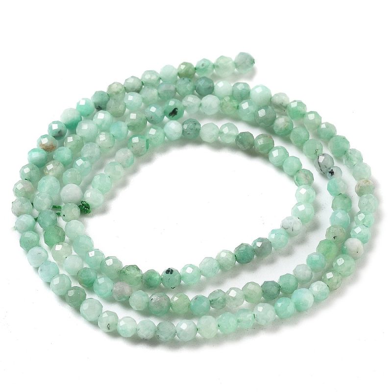 Открийте елегантните фасетирани мъниста от изумруд, идеални за създаване на изискани бижута. Този наниз от 3 мм кръгли мъниста с дължина 38-39 см ще добави лукс и стил към вашите проекти.