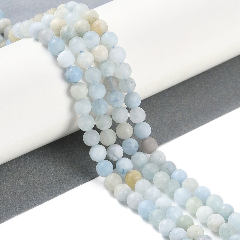 Потопете се в нежната елегантност на аквамарина, перфектни за създаване на изискани бижута. Тези матирани, кръгли мъниста с размер около 6 мм ще добавят фина красота и стил към всяка ваша творба.