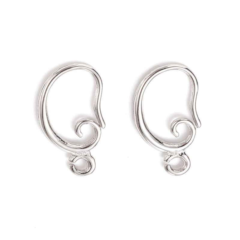 Куки за обеци с 18 К покритие от бяло злато, 15x10x2мм - 1 чифт