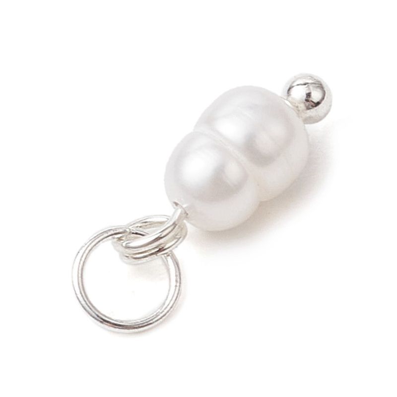 Добавете изтънчен акцент към вашите бижута с тази естествена сладководна перла. С елегантен месингов обков в сребрист цвят, идеална за създаване на уникални и стилни аксесоари.