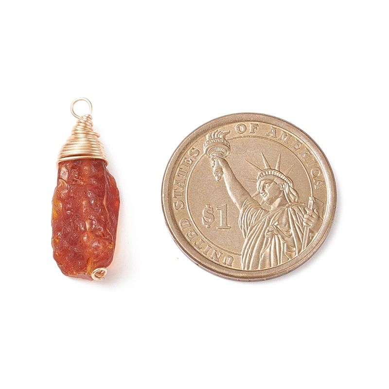 Добавете естествен акцент към вашата визия с тази висулка от кехлибар, обгърната частично в месингова тел. Уникален аксесоар, който предава топлина и стил.