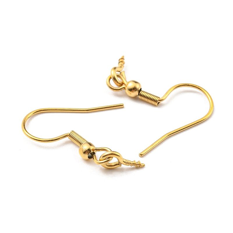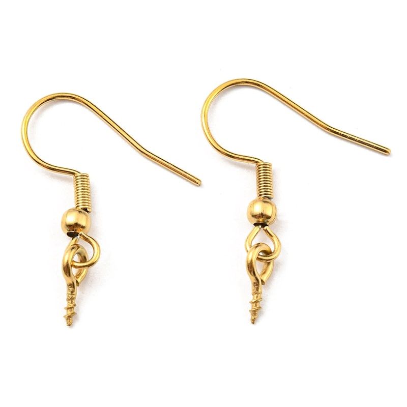 Куки за обеци с резба 1 мм за директно навиване и лепене на мъниста с половин отвор. Изработени от неръждаема стомана 304 с реално 18K златно покритие за елегантен, устойчив завършек.