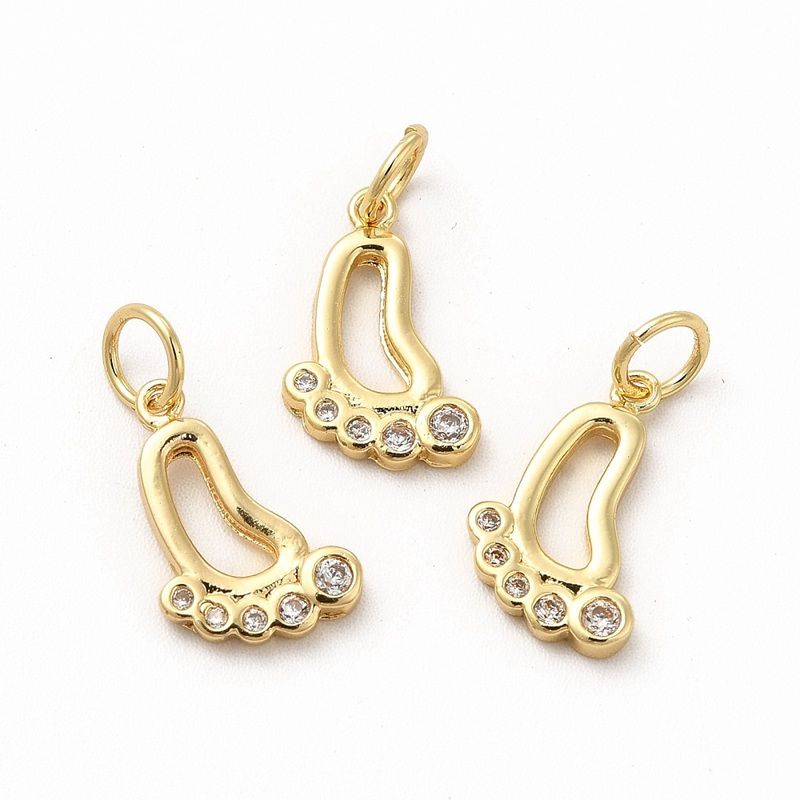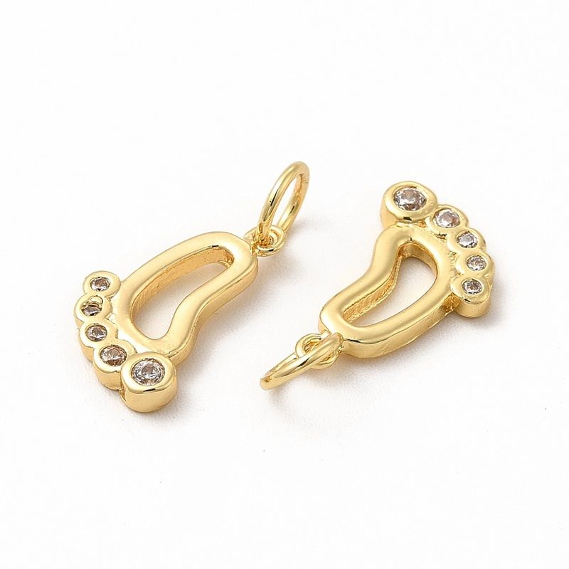 Елегантна висулка „краче“ от месинг с 18K златно покритие и инкрустация от микро фианити с халкичка за лесно закачане; размер 13.5×8.5×2 мм, отвор 3.6 мм.