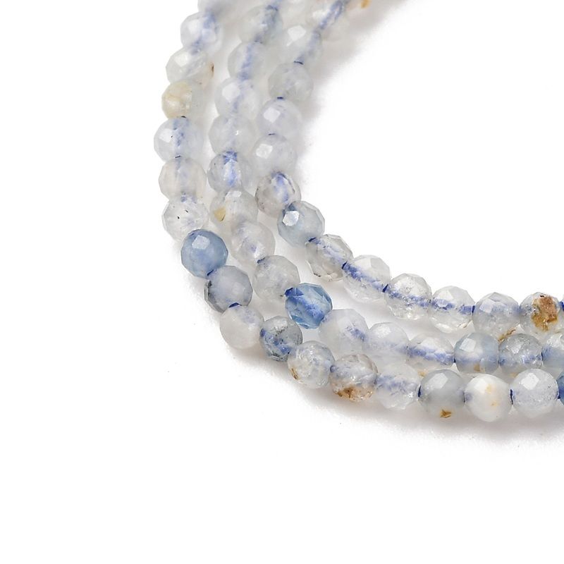 Естествен аквамарин, нетретирани мъниста – фасетирани 2 мм с нежни небесни нюанси. Подходящи за фини гривни, многоредни колиета и деликатни акценти.