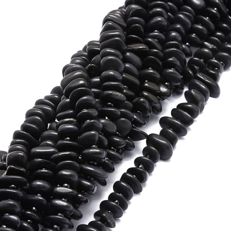Естествен шунгит мъниста чипс 9–14×8–11×1,5–5 мм- наниз 39,5 см