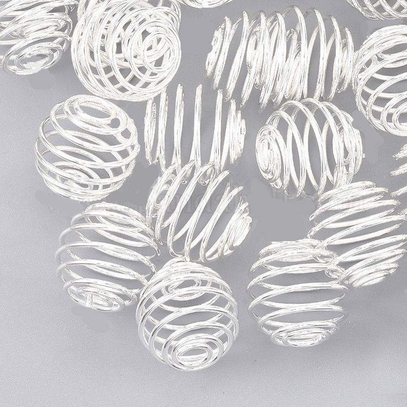 Сребристият ажурен разделител е идеален елемент за добавяне на лек рустик акцент към Вашите бижута. Кръглата форма е изградена от четири прецизно навити витки тел около малка централна сфера, което осигурява уникална текстура и по-малък визуален обем.
